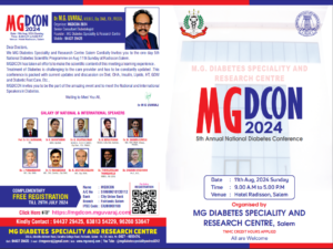 We MG Diabetes Speciality and Research Centre Salem Cordially Invites you to the one day 5th National Diabetes Scientific Programme on Aug 11th Sunday at Radisson Salem.